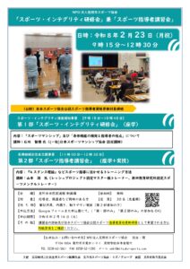 NPO法人見附市スポーツ協会「スポーツ・インテグリティ研修会」兼「スポーツ指導者講習会」 (2/8時点)申し訳ありませんが、定員に達しましたので申込受付を終了しました ◎第1部 スポーツ・インテグリティ推進補助事業「スポ […]