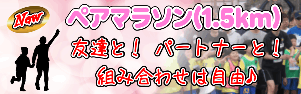 今大会は新たに1.5kmペアマラソンが追加されるなどパワーアップ!